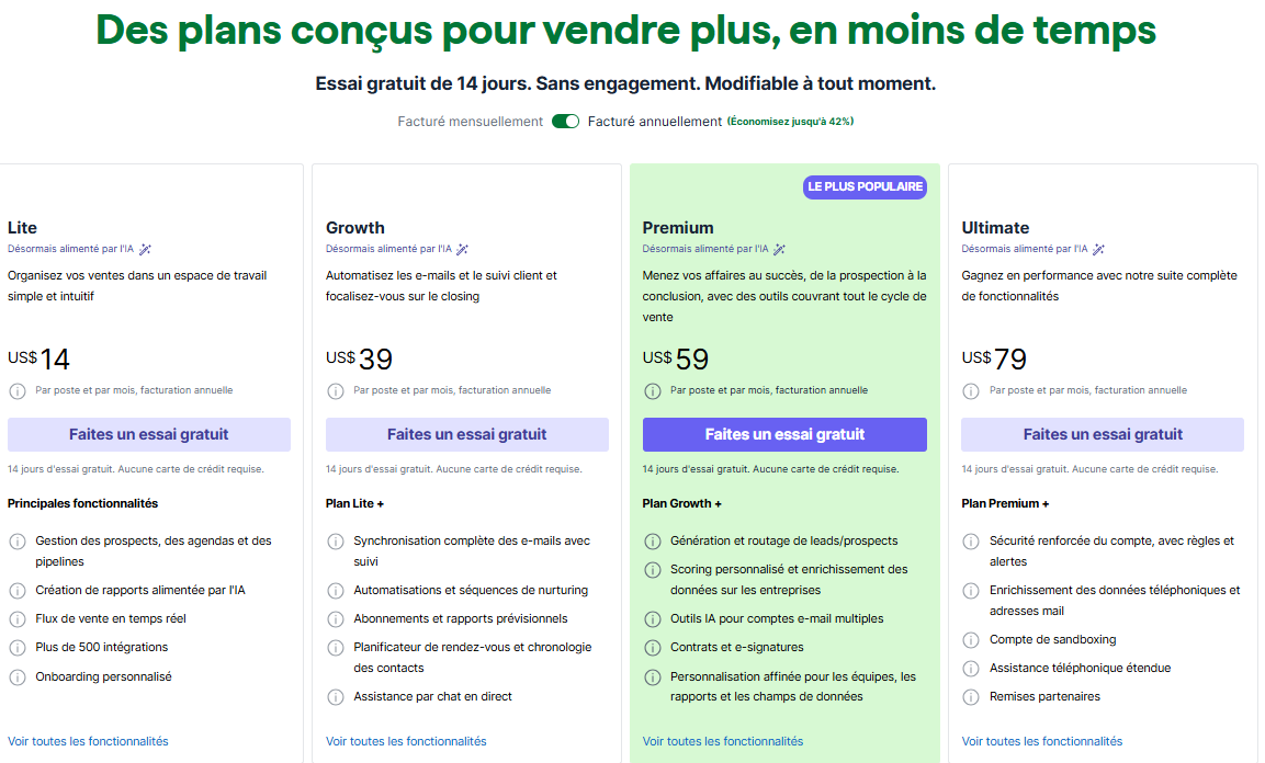 Le choix du plan peut changer ton expérience du CRM. Selon ton budget, ton volume et ton ambition, certaines formules offrent un ROI bien supérieur aux autres.