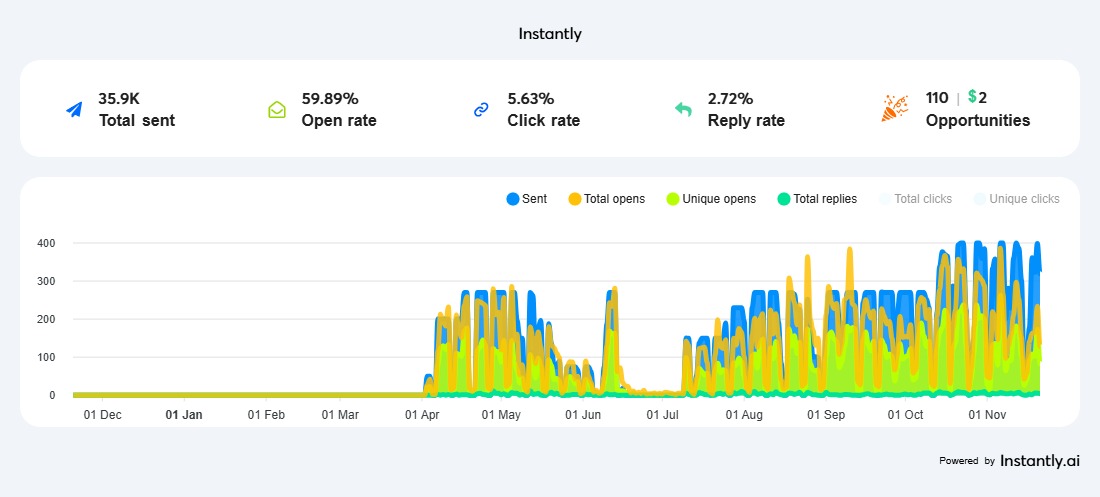 Instantly te permet de déployer des volumes massifs sans sacrifier la délivrabilité. C’est l’outil idéal si tu veux scaler vite avec un setup minimal et des campagnes qui partent en quelques minutes.
