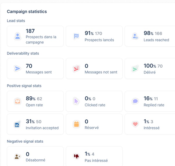 L’interface est ultra simple, les campagnes se lancent en quelques clics et l’équipe comprend l’outil dès le premier jour. Parfait si tu veux éviter la friction, les résistances ou un onboarding interminable.